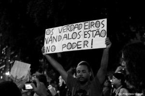“Pula catraca” e “Passe livre”. Começou nas quebradas e foi para as universidades, pois é, pobre anda de ônibus para ir estudar, e estudar dá nessas coisas. Essa gente agora quer fazer revolução. E muito antes disso os jovens, como disse o camarada da “Esquerda Marxista”, já vinham acompanhando atentamente a primavera árabe e a quebra da Europa começando pela mãe da DEMOcracia. Meu Deus quanta ironia!